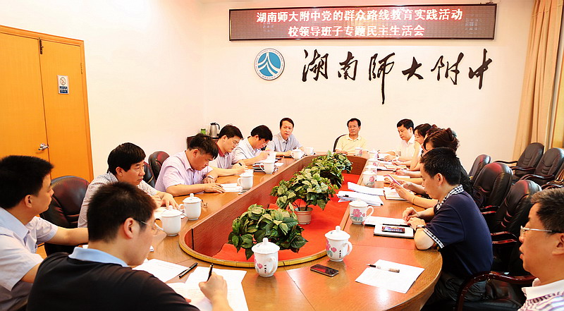 6月19日,我校领导班子群众路线教育实践活动专题民主生活会在办公室楼三会议室举行。湖南师大常务副校长卢岳华,湖南师大群众路线教育实践活动第六督导组组长秦媛,督导组成员刘江南、周伊慧到会指导。我校全体党委委员参加会议。会议由党委书记曾少华主持。 会上,曾少华代表附中领导班子作对照检查发言,班子成员逐一进行了个人对照检查发言,从遵守党的政治纪律情况,贯彻中央八项规定精神,转变作风情况,“四风”方面存在的突出问题,产生问题的原因分析,今后的努力方向和改进措施等方面作了汇报。每位班子成员对照检查发言后,与会同志都对其提出了诚恳的批评意见和建议。