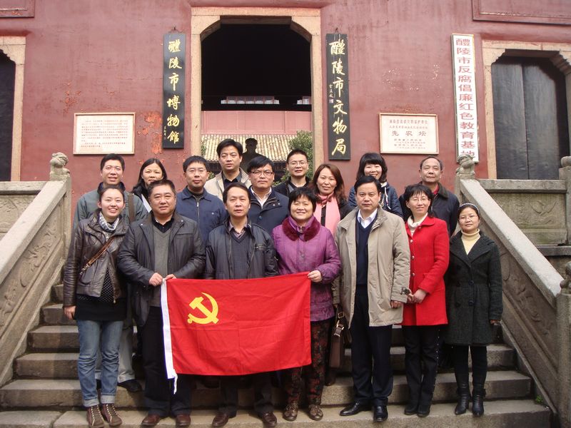 为重温党的历史,迎接建党90周年,3月12日,我校行政综合一党支部及行政工会小组20余人在支部书记康辛勇同志、工会组长任琼同志的带领下前往醴陵,进行了一次主题为“牢记党的历史,不忘党的宗旨”的党日活动。学校党委书记曾少华同志和副校长谢永红同志参加了此次活动。