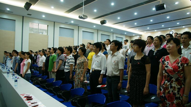 7月1日下午,我校庆祝建党九十周年表彰大会暨新党员宣誓仪式在会议厅隆重举行,全体党委委员、在职教职工党员佩戴党徽出席了大会,会议由校党委组织委员、副校长黄月初主持。