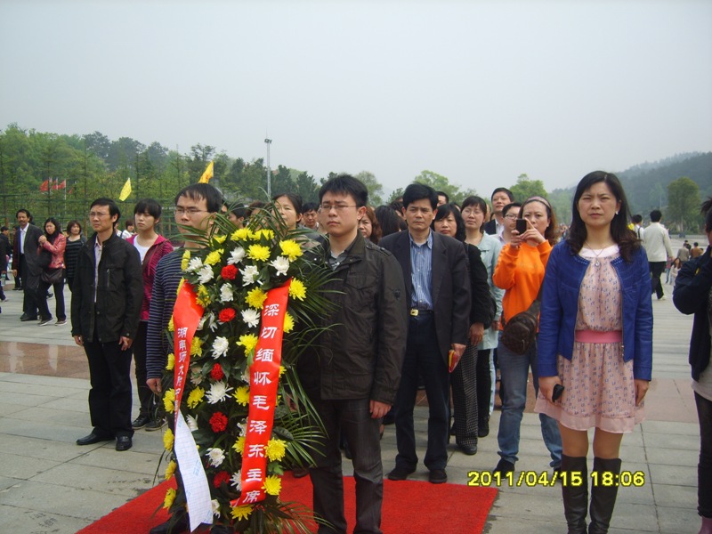 4月15日,在高三、广高三年级党支部的组织下,两个年级全体党员来到伟人故里——韶山进行学习参观。在铜像广场,全体党员向毛主席铜像敬献了花篮,虔诚的三鞠躬后绕铜像一周,以表达对一代伟人的敬仰之情。伟人的精神必定会激励各位老师在各自的工作岗位上奋发进取、开拓创新!