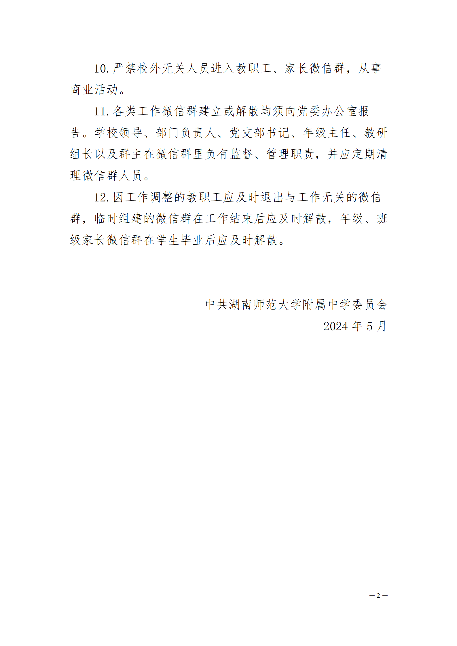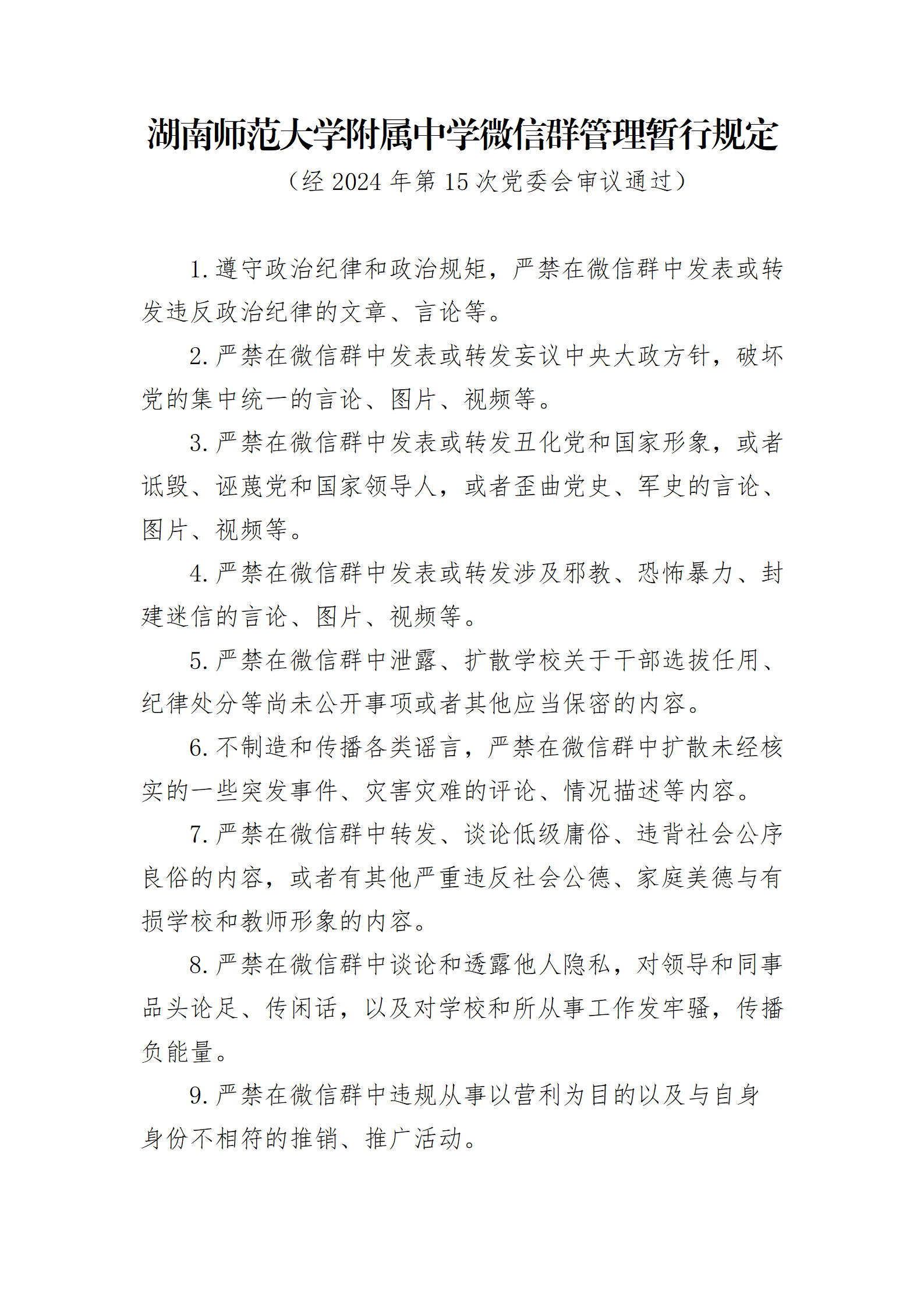 湖南师范大学附属中学微信群管理暂行规定