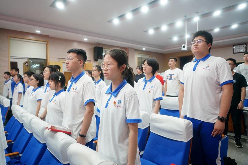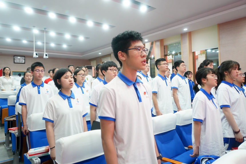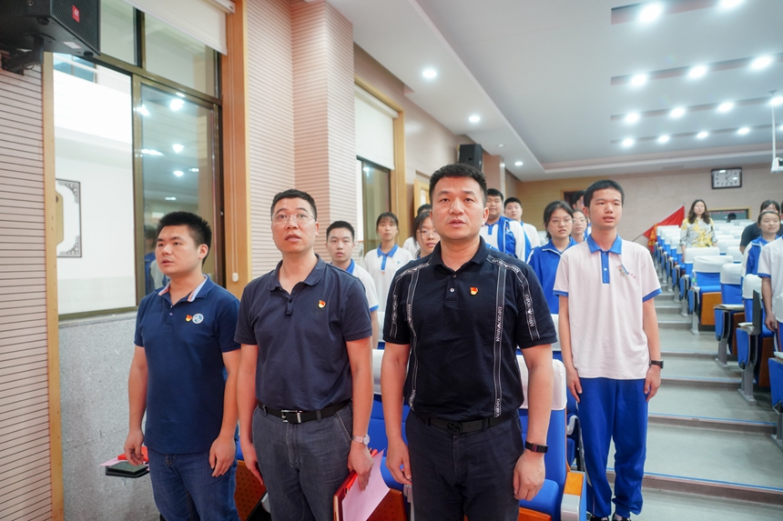 党委书记黄月初,党委班子成员谢永红、陈迪勋、李春莲、苏建祥、廖强,党委办公室主任伏炎安、副主任苏晓玲,团委书记李钊、副书记杨一鸣,高2019级党支部书记陈兵、组织委员高慧雯、纪检委员陆稳,广益实验中学党总支书记叶越冬,博才实验中学党总支书记李新宇、副校长兼湘江校区执行校长贺仁亮出席。来自湖南师大附中、广益实验中学、附中博才实验中学48名师生学员参加了开学典礼。