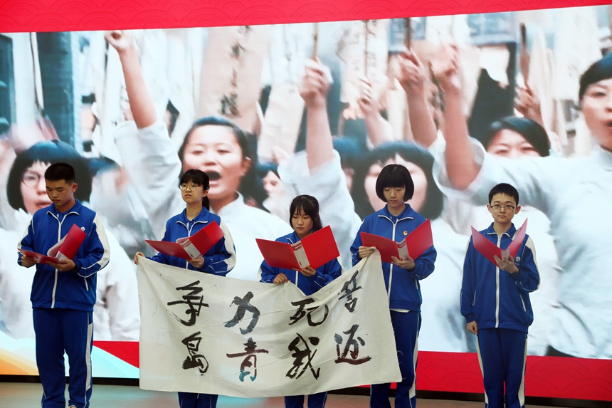 罗毅老师带领1903班同学展示了主题班会《红旗引路·玉汝于成》,以“雄关漫道,忆往昔峥嵘岁月”高举星火、追忆英烈;以“攀山踏雪,赞当代风流人物”致敬身边时代楷模;以“百舸争流,看吾辈同学少年”继承革命精神,谱写未来华章。