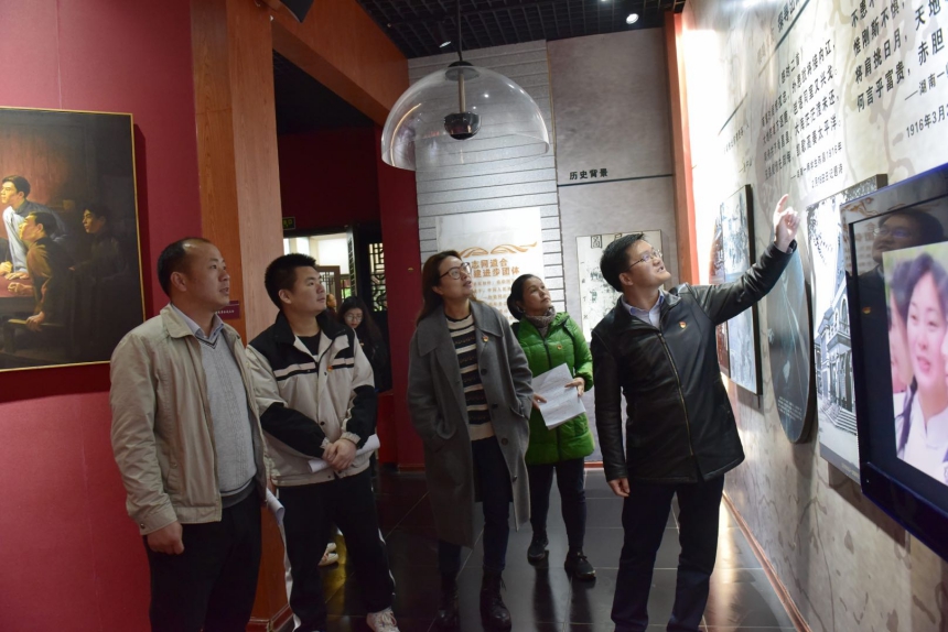 春雨淅淅沥沥,学习润物无声。在陈列室,大家通过参观学习,了解了新民学会的发展历程。“新民学会建党先声,毛蔡寄庐流芳千古”,那一段段过去的文字、一幅幅老旧的照片,无一不在诉说着百年前那群有志之士的报国之志。重温那段历史,党员同志们感受到了信仰的力量。接下来,彭荣宏紧密联系党的百年奋斗历程,围绕“中国共产党为什么能”、“马克思主义为什么行”、“中国特色社会主义为什么好”、结合16条基本道理开展了现场教学。作为新时代的党员,在“学党史”、“悟思想”之余,更要沿着革命先辈的足迹继续奋力前行,“办实事”、“开新局”。