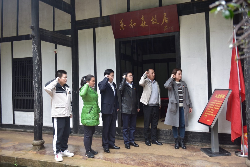 最后,党员同志们在蔡和森故居门口重温了入党誓词,并拍照留念。