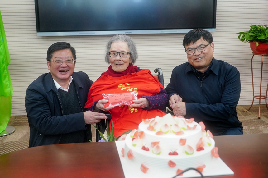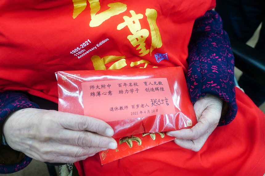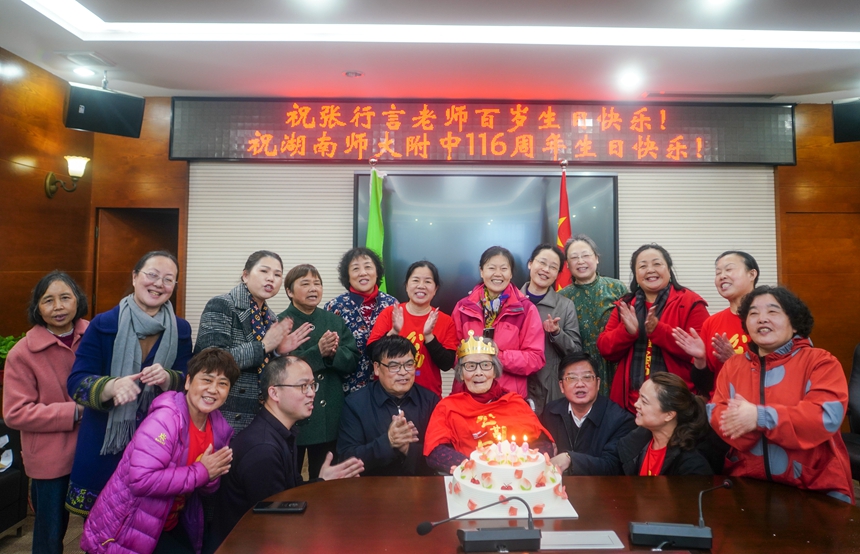 在今天这个特殊的日子里,我校特邀校友、离休教师、百岁老人张行言在学校校史馆与党、与学校同庆生日。张行言为学校建设捐赠了两万元人民币,并表达了对党的感恩之情、对附中建设发展的欣喜与期许,以及对附中学子们的殷切期望。张老师的寄语,极大地激发了学子们“今日我以附中为荣,明日附中以我为荣”的爱校热情。
