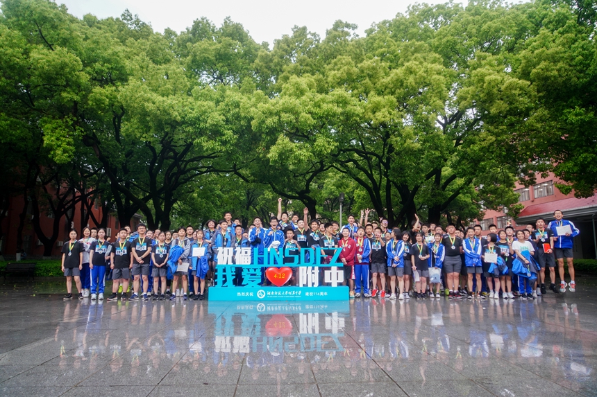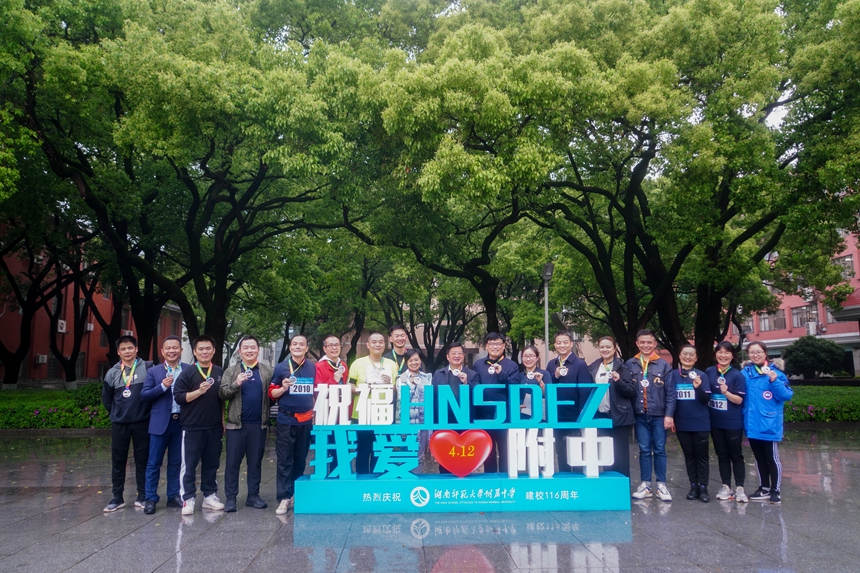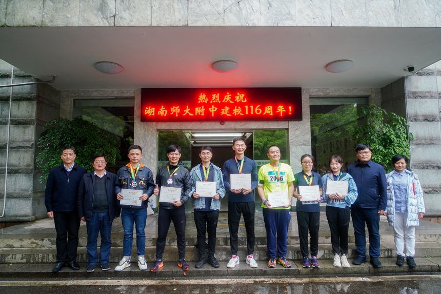 下午四点半,全程4.12公里的马路长跑比赛在潇湘大道上隆重举行,参赛选手由附中100名学生、10名教师、6名校友组成。四点三十分,发令枪响,比赛即刻开始。116名选手奋勇争先,用青春和激情献礼附中华诞。