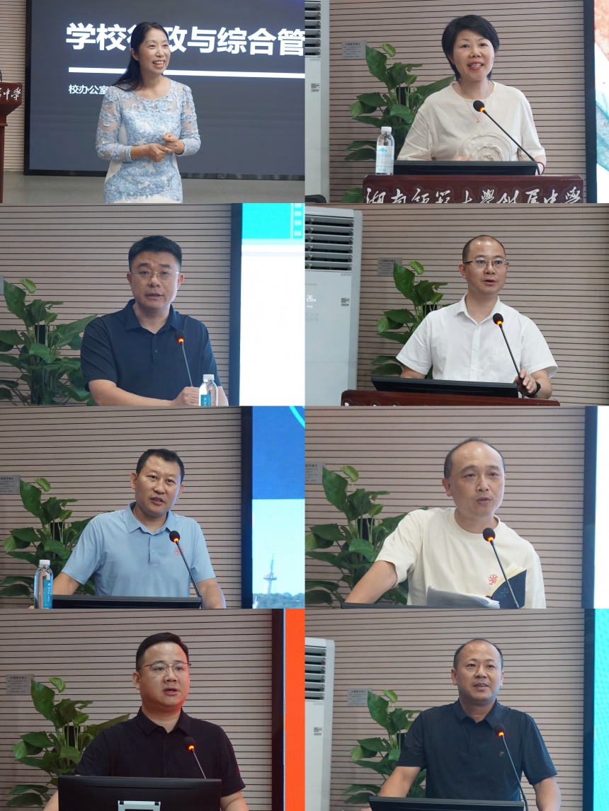培训期间,校办公室主任苏晓玲、课程与教学处主任陈淼君、副主任朱修龙和王建、科研与教师发展处副主任向超、人力资源管理中心主任周琼、德育与学生发展处副主任蔡毅、后勤服务和安全保卫中心副主任焦畅结合部门的工作职能,对学校常规管理工作与规章制度进行了讲解,为新入职教师打开了全面了解学校运营管理的窗口。
