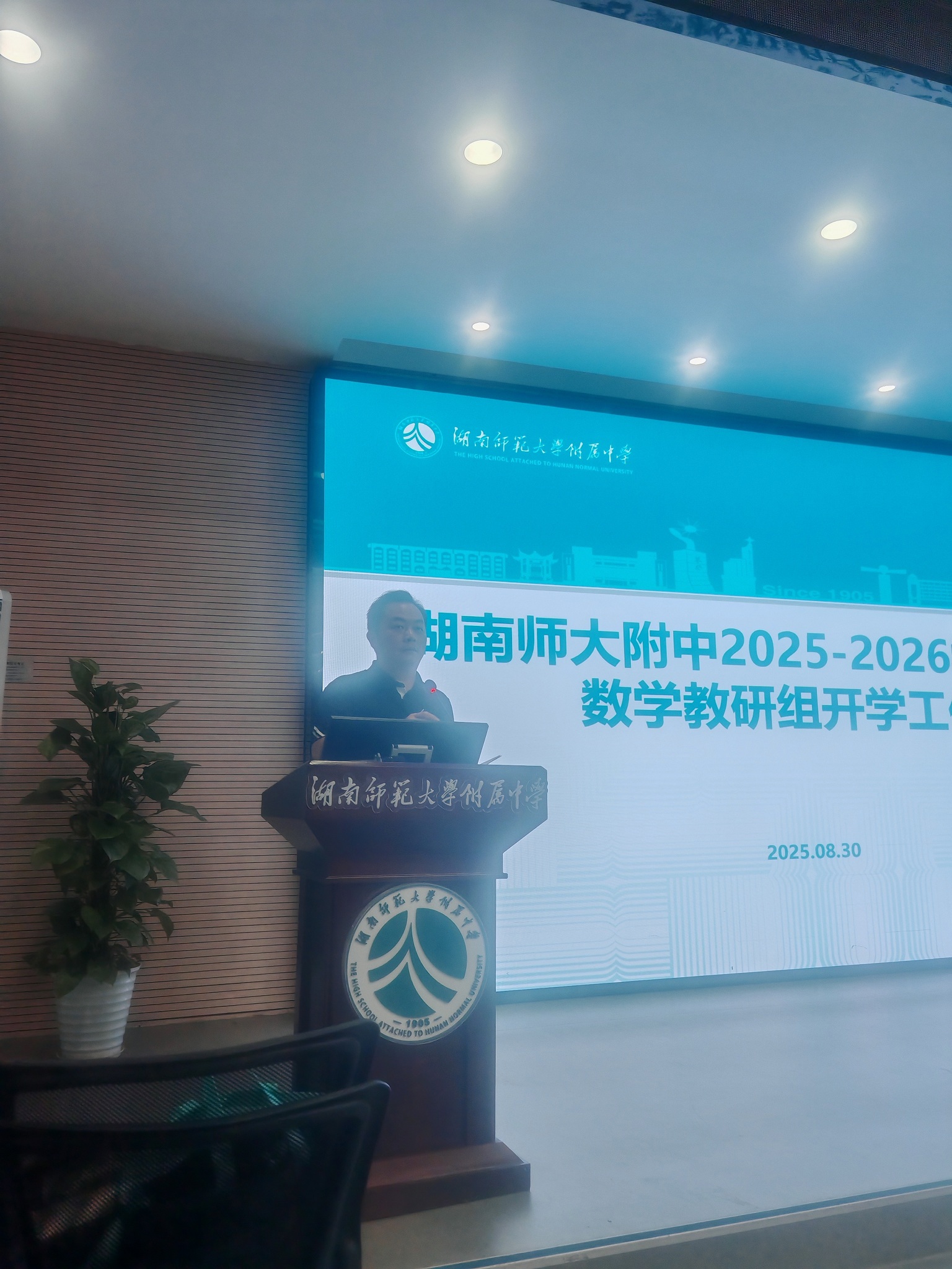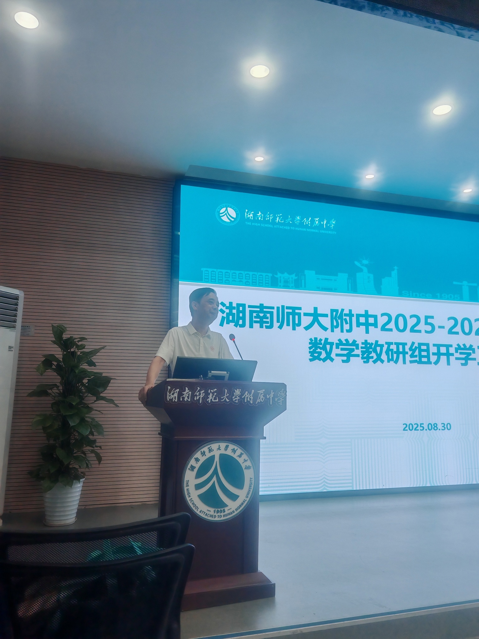 为落实学校在教学中的各种工作要求,加强教研组的建设,提升教研组的凝聚力,2025年8月30日上午,湖南师大附中数学教研组在图书馆报告厅举行了新学年的第一次教研组会议。会议由数学教研组副组长杨章远老师主持,桃子湖校区和大泽湖校区的全体数学教师参加了会议。