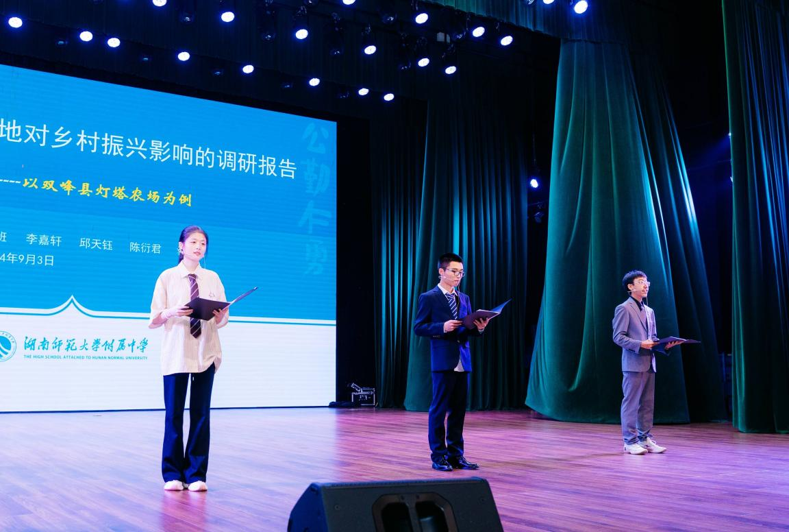 活动共安排十一个团队集中汇报,这些成果是从2023-2024年综合实践课程四百余项成果中推选出来的,其中包括乡村实践调研、城市实践调研、地理野外研学考察、生物野外科学考察、国学夏令营、模拟联合国、传统文化高端论坛及研究性学习等八个项目。
