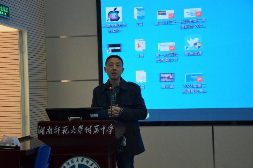 本次活动由长沙市教育科学研究院主办,采取专家讲座、经验介绍与名师示范课相结合的方式,邀请英语资深备考专家与一线英语教学名师共同对英语教师关心的2023年高考全国卷命题趋势进行解读并精准指导备考。本次活动由师大附中英语学科考试研究员胡玲玲老师主持。会议伊始,湖南师大附中苏建祥副校长致欢迎词,对各位专家及教育同仁的到来表示热烈的欢迎,并对我校教学理念及教研特色进行了简要介绍。苏校长强调了在高考倒计时70天之际开展科学有效备考的重要性,希望各位老师在此次研讨会上学有所获、研有所得。