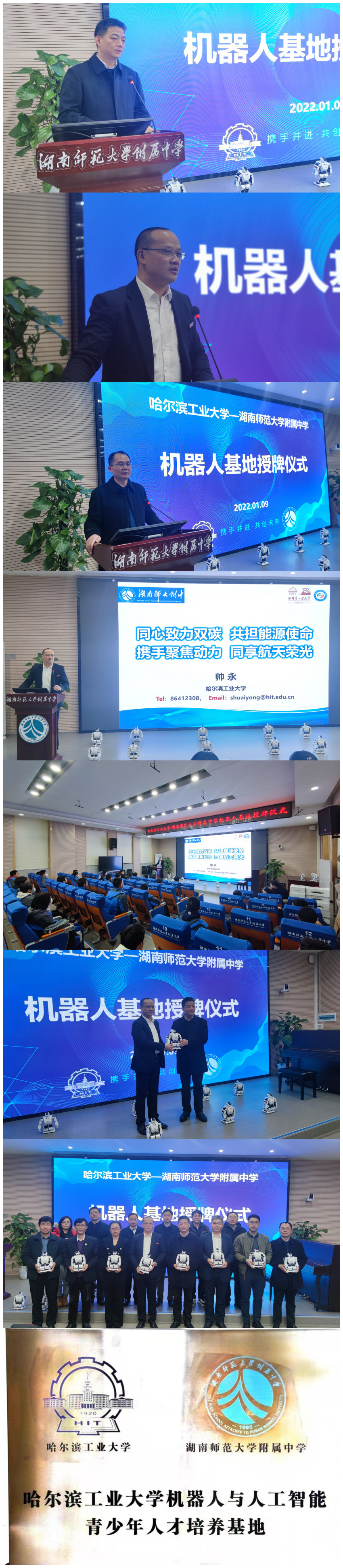 2022年1月9日,哈尔滨工业大学—湖南师大附中机器人与人工智能青少年人才培养基地授牌仪式在我校图书馆多功能报告厅举行,我校副校长苏建祥,哈尔滨工业大学校长助理帅永出席活动。
