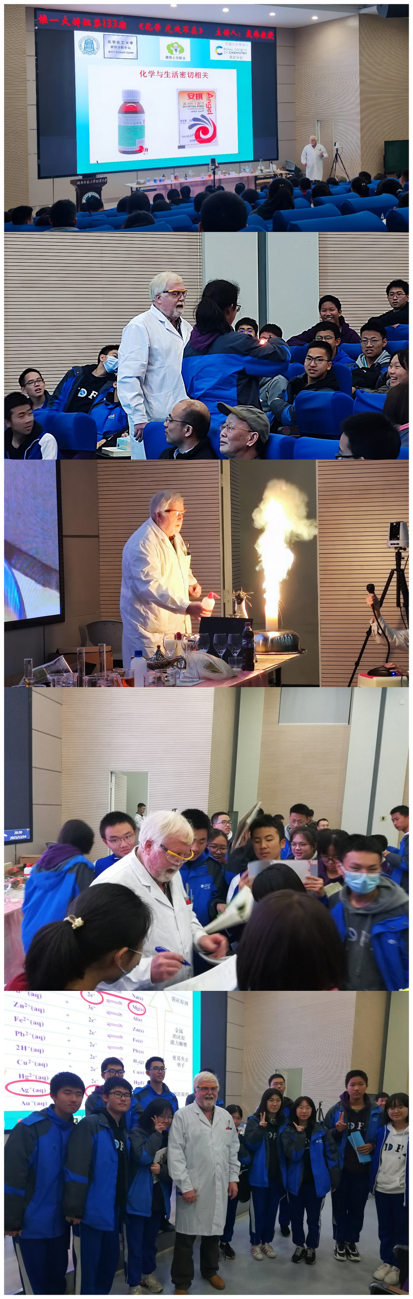 一个半小时的讲座,师生在欢笑和惊叹中飞快度过,这场讲座不仅使学生感受到化学魅力的同时,更点燃了学生浓浓求知欲和崇尚科学的进取精神。