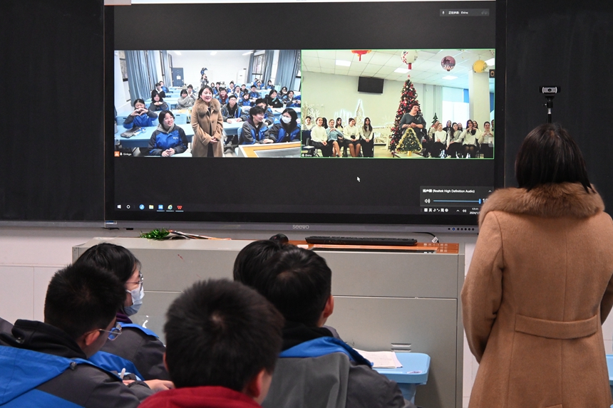 1月9日,我校俄语、法语班的学生在老师的组织下与友好校俄罗斯喀山第183学校、法国顾拜旦中学学习中文的学生进行了线上交流活动。