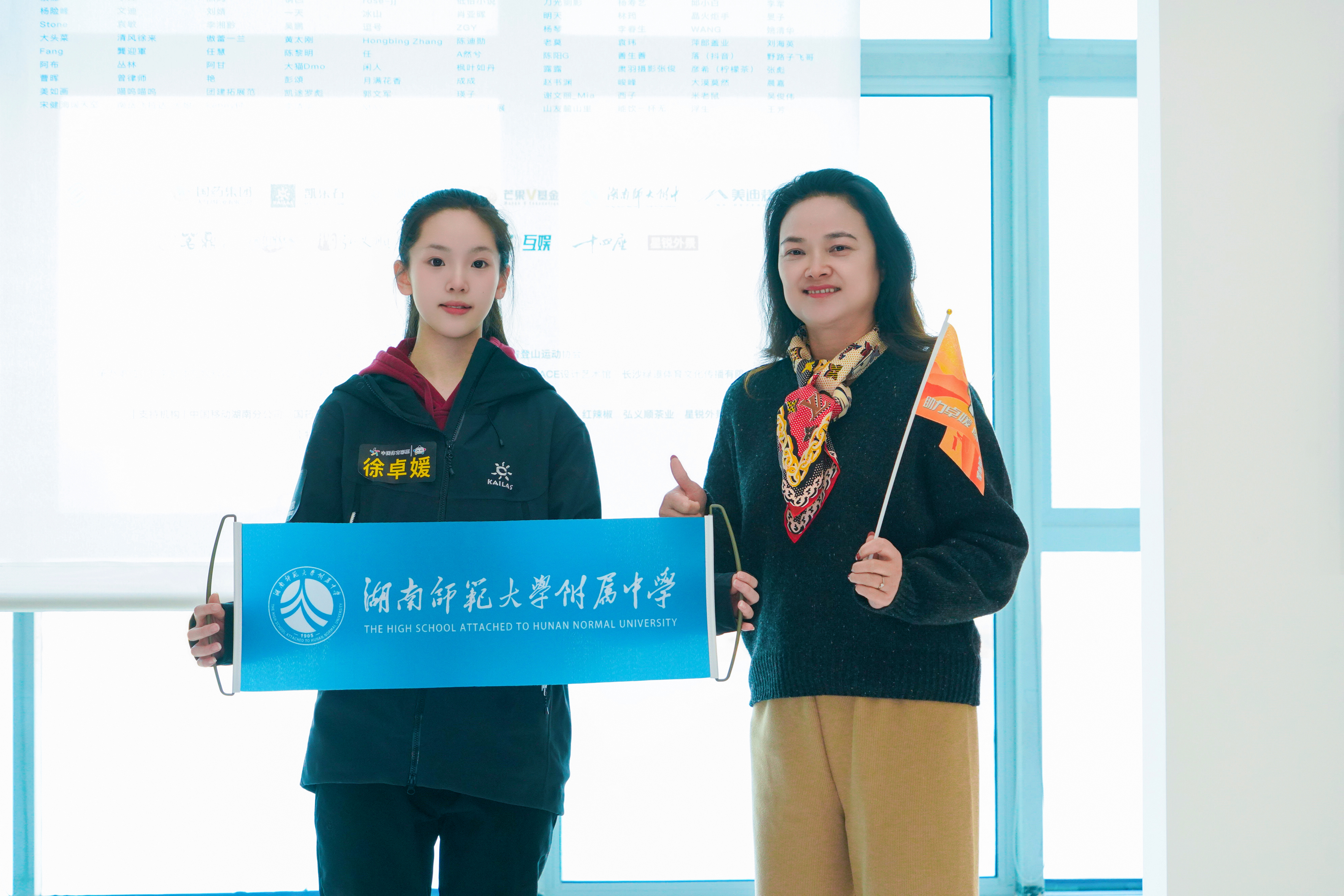 12月22日,我校徐卓媛同学乞力马扎罗攀登出发仪式在湖南设计艺术馆举行。我校体育美育中心主任谭伟为徐卓媛授旗助威,她鼓励徐卓媛继续发挥“自强不息 追求卓越”的附中精神,勇攀高峰。