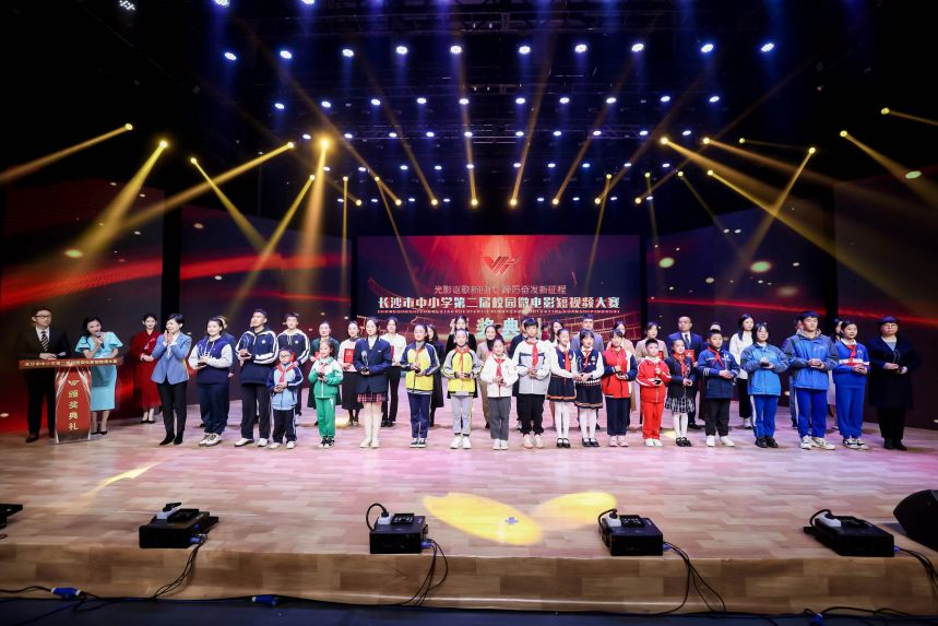 12月9日,“光影讴歌新时代,踔厉奋发新征程”长沙市中小学第二届校园微电影、短视频大赛颁奖典礼在湖南教育电视台举行,本届微电影短视频大赛由长沙市教育局、共青团长沙市委共同举办,共评出微电影作品一等奖18部、二等奖20部、三等奖24部、短视频作品一等奖29部、二等奖28部、三等奖59部、单项最佳奖项15个、最受欢迎影片4部、最佳指导教师57人、优秀组织奖5个。
