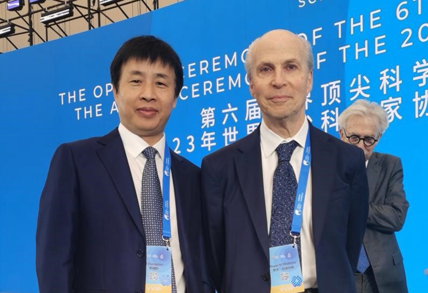 李湘黔与世界顶尖科学家协会主席诺贝尔奖获得者罗杰·科恩伯合影