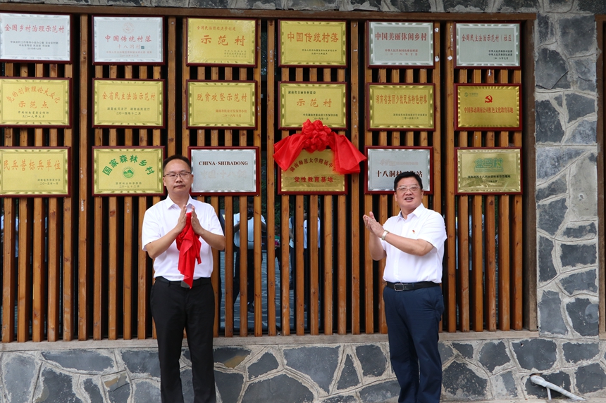 9月3日,我校与花垣县十八洞村共建党性教育基地揭牌仪式举行。花垣县委副书记张世田、我校党委书记黄月初、纪检书记李春莲、党委办公室主任吴卿、附中教育集团办公室主任李文昭和党员代表参加。
