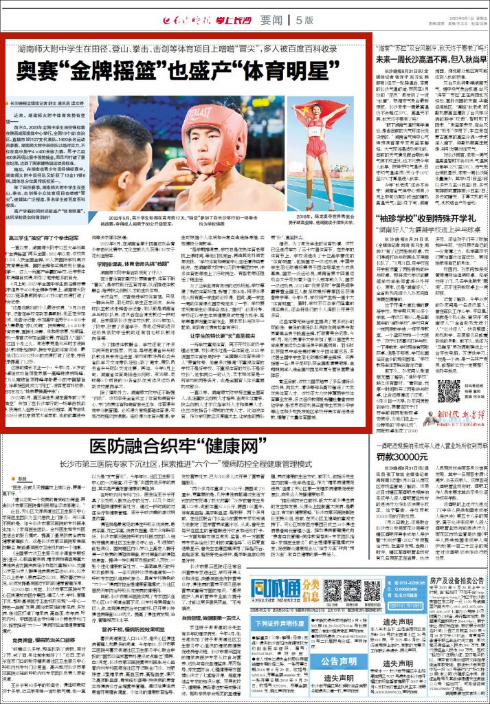 【长沙晚报】奥赛“金牌摇篮”也盛产“体育明星”