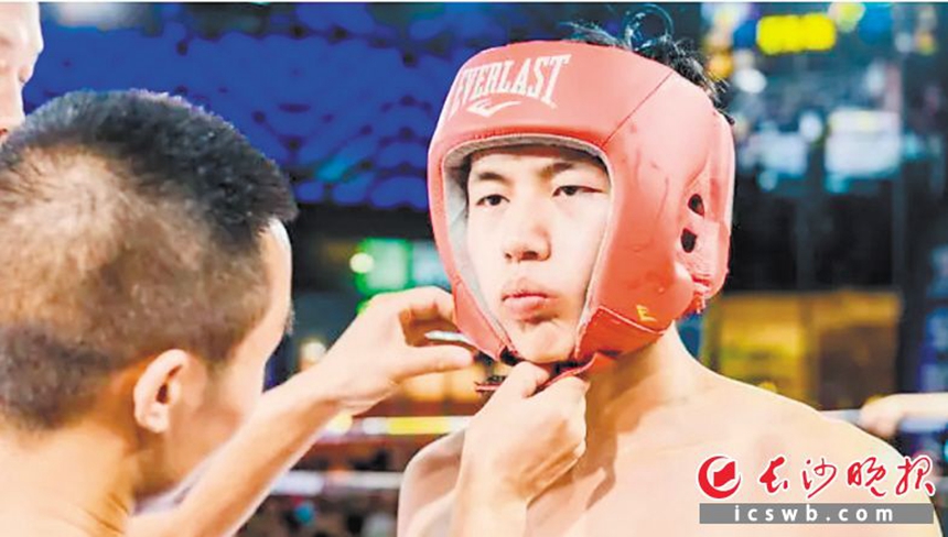 2022年5月,高三学生彭湖在高考前17天,“抽空”参加了在长沙举行的一场拳击挑战赛,夺得成人组男子60公斤级冠军。 均为学校供图