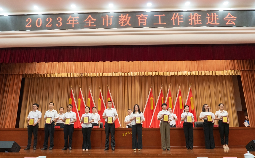 8月30日,在2023年长沙市教育工作推进上,中共长沙市委人才工作领导小组办公室和长沙市教育局发布了《关于2022年、2023年长沙市优秀教育人才选树结果的通报》。我校校长谢永红入选长沙市教育专家(共30名),数学教师赵优良、生物教师杨群、历史教师黄雅芩入选长沙市教育名师(共150名),英语教师陈莎筠、心理教师李志艳入选长沙市骨干教师(共150名)。
