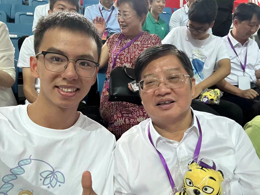 (黄月初与保送清华大学的原附中2001班张哲昊同学合影)