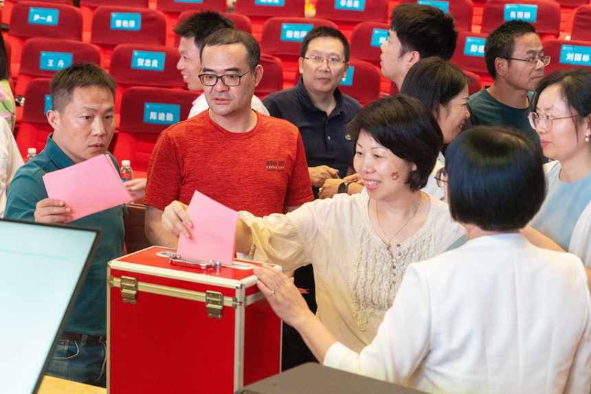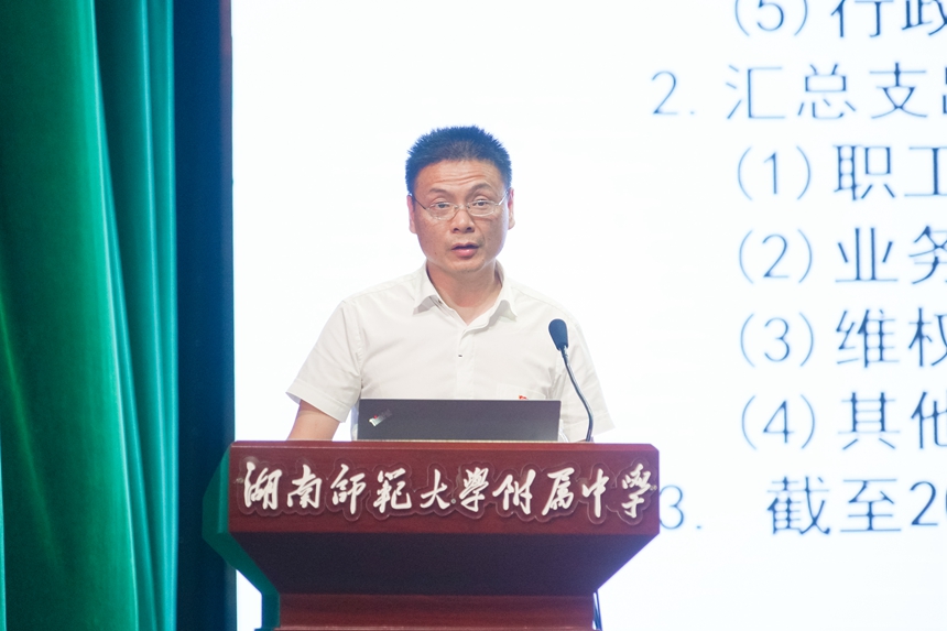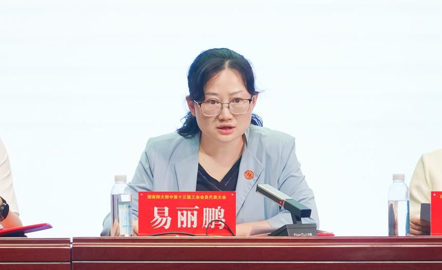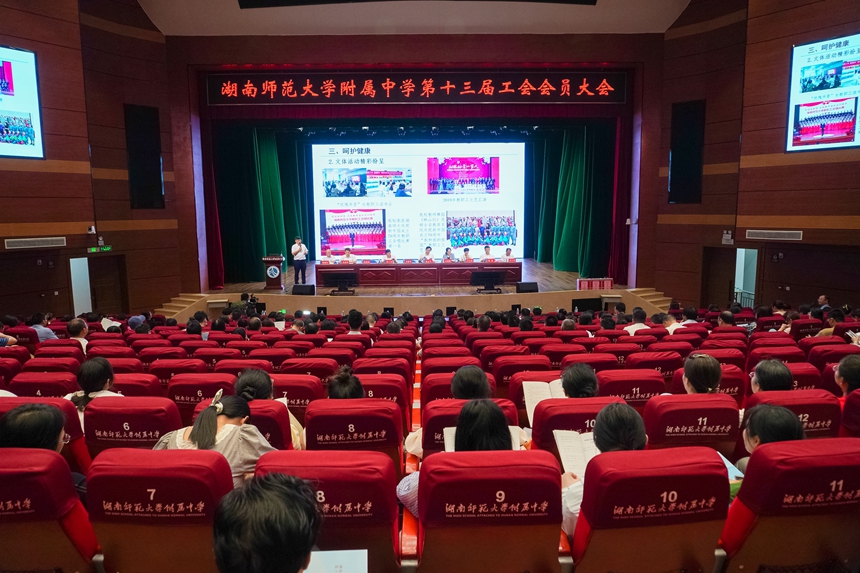 6月30日,湖南师范大学附属中学召开工会换届选举大会,全体会员参加会议。湖南省总工会党组成员、省教育工会主席刘湘凌,湖南省教育工会副主席易丽鹏,湖南省教育工会普教工作部部长龙培应邀出席。