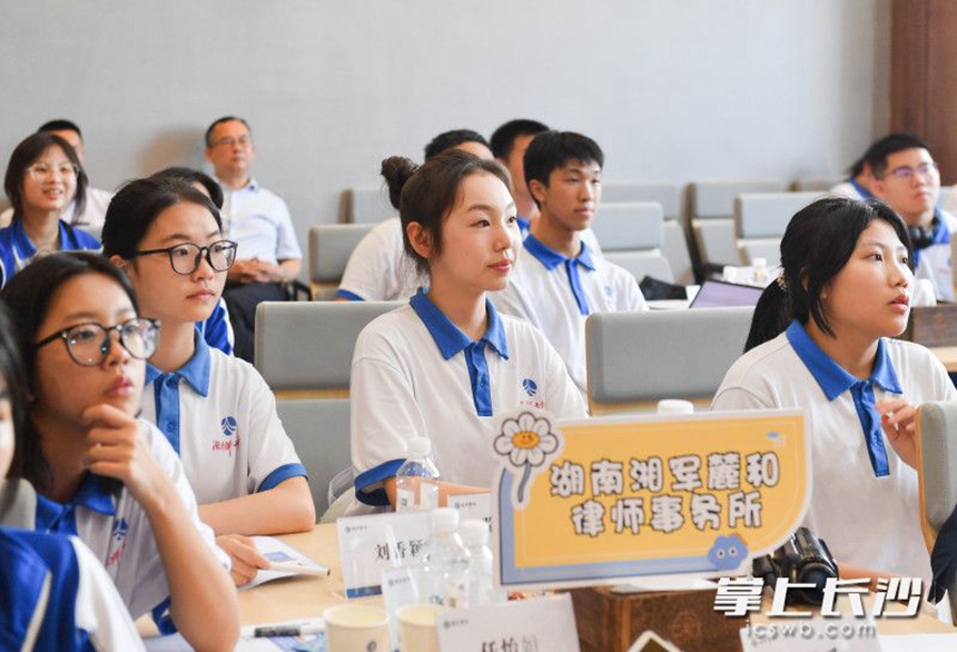 湖南师范大学附属中学高 2122 班的同学们来到湘军麓和律师事务所与律师面对面交流学习。长沙晚报全媒体记者 邹麟 摄