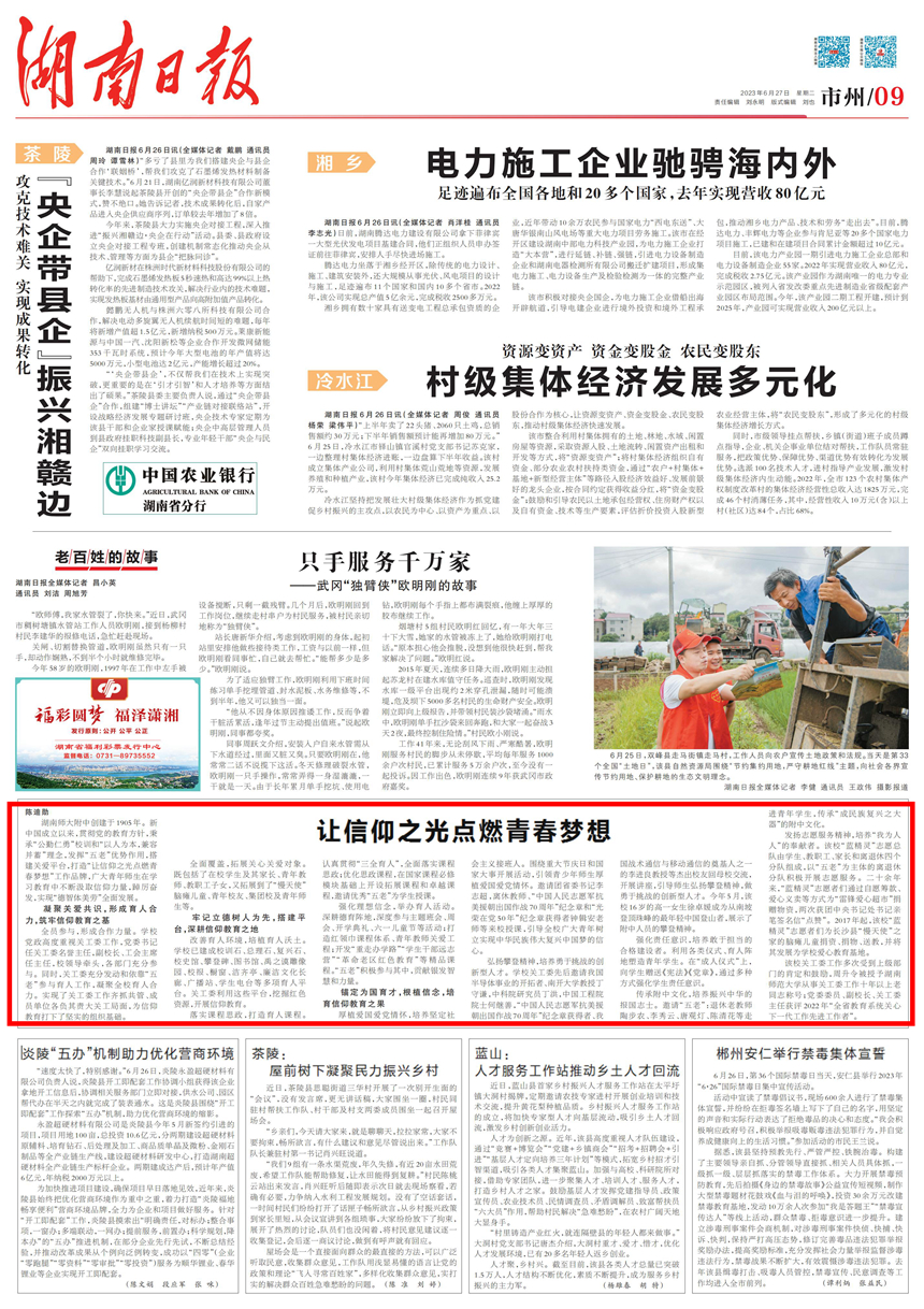 (作者系湖南师大附中党委委员、副校长、工会主席、关工委主任陈迪勋)
