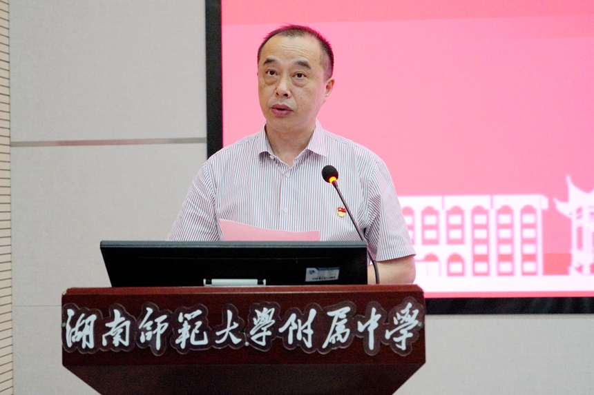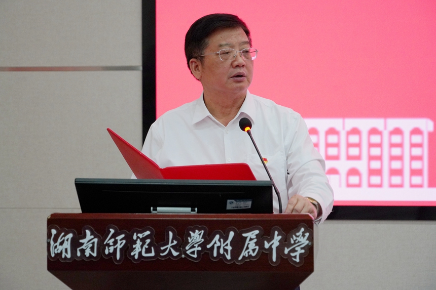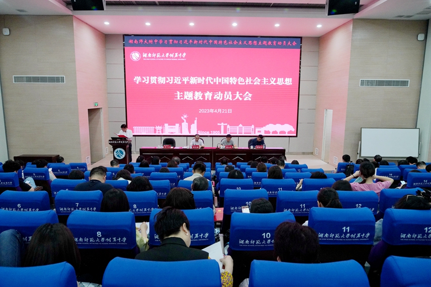 4月21日下午,学校举行学习贯彻习近平新时代中国特色社会主义思想主题教育动员大会。湖南师范大学主题教育督导组第六组组长、机关党委副书记粟用湘,主题教育督导组第六组副组长、纪委监察专员办公室副主任唐国华、主题教育督导组第六组联络员、机关党委宣传教育科科长马亚飞及全体在家校领导出席会议,会议由我校校长谢永红主持。