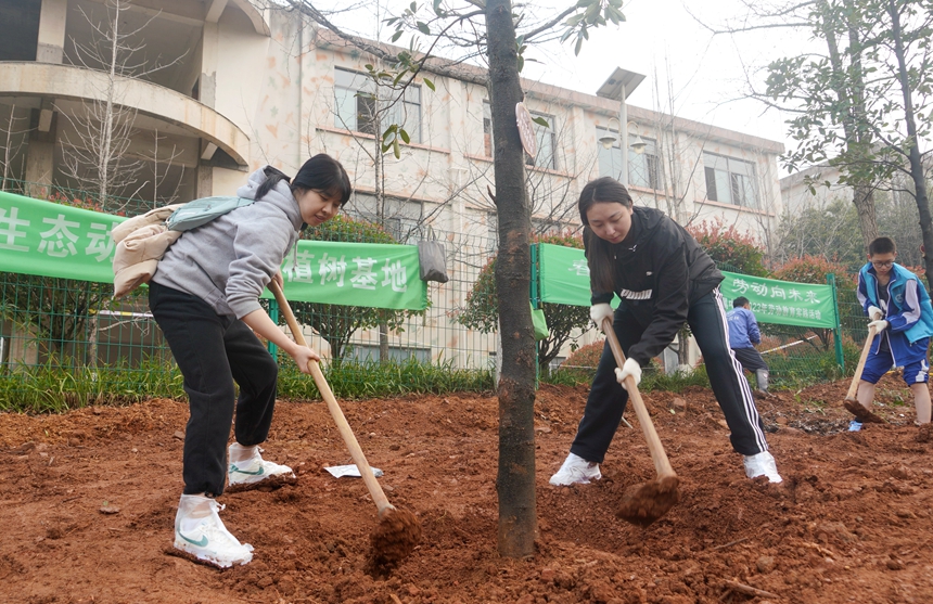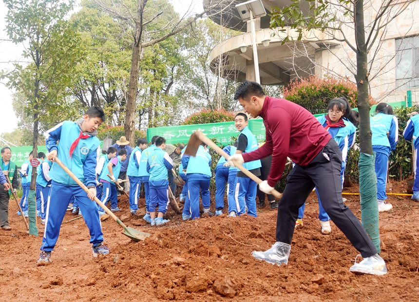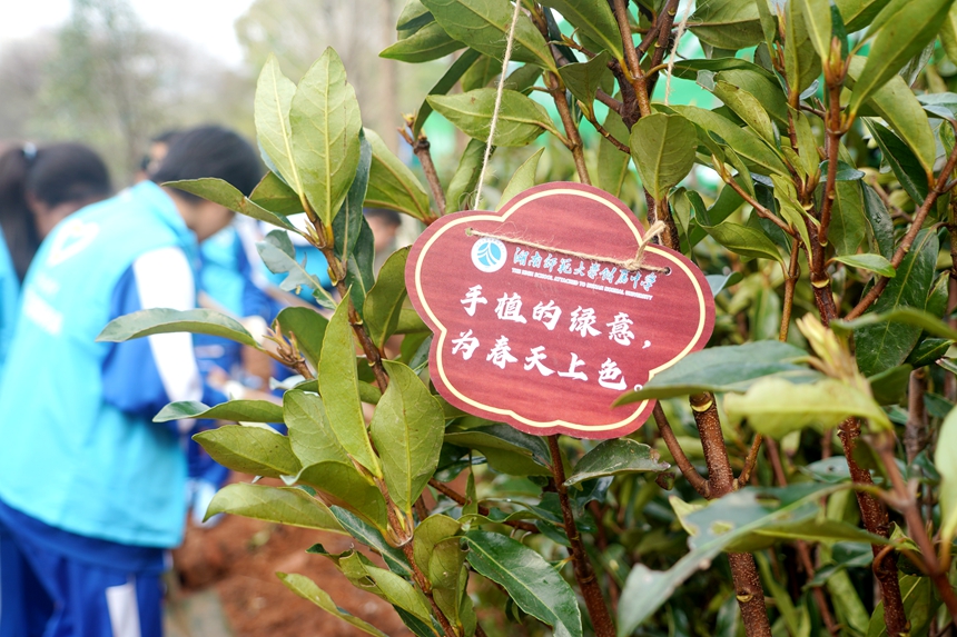 植树过程中,长沙生态动物园的园林专家为同学们科普了绿化知识,指导种植要领,鼓励大家积极履行义务植树尽责。师生们干劲十足,三五人一组拿着铁锨、锄头等工具,在植树点挥锹填土、扶正苗木、压实泥土、挂“护树卡”。尽管裤腿和鞋子都沾满了黄泥,脸上始终洋溢着劳动的喜悦。