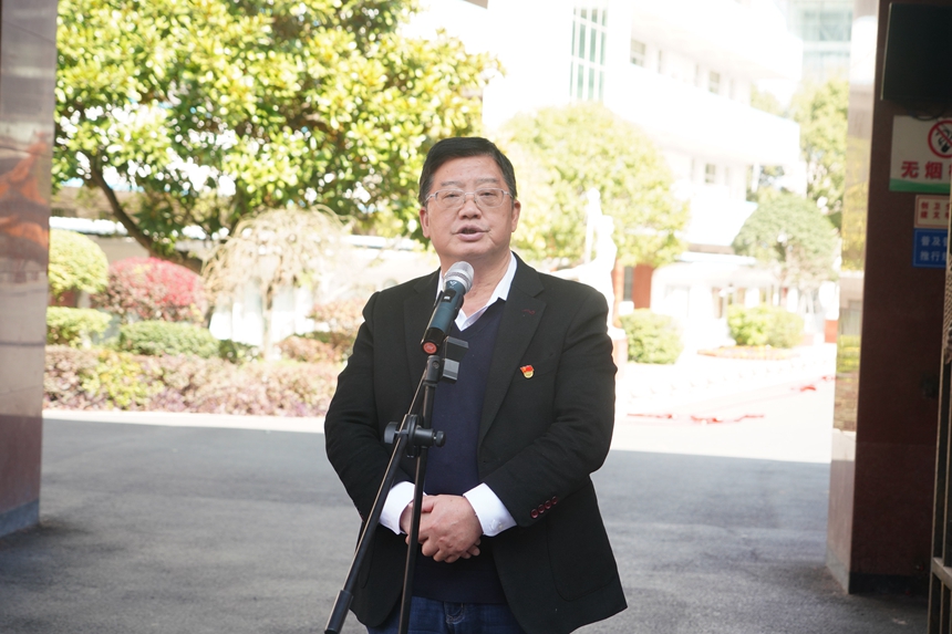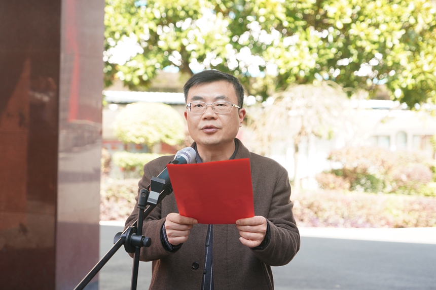 欧阳伟立致辞。他指出,成为省级科研基地联合单位对于汝城一中的改革与发展意义重大,既是光荣,也是责任;既是机遇,也是挑战。汝城一中全体师生一定要珍惜荣誉和机会,协助湖南师大附中切实推进基地建设与研究,为构建高中教育高质量发展体系做出贡献。
