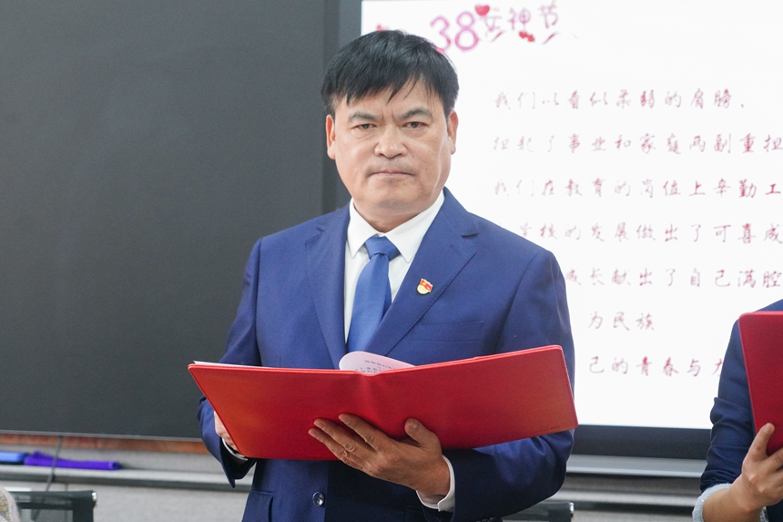 3月6日,学校举行“玫瑰书香”女教职工读书会,我校副校长兼工会主席陈迪勋、纪检书记李春莲为大家朗诵了节日贺词《致敬我心中那些美丽的花儿》,为为全体女教职工送上“三八”国际妇女节祝福。
