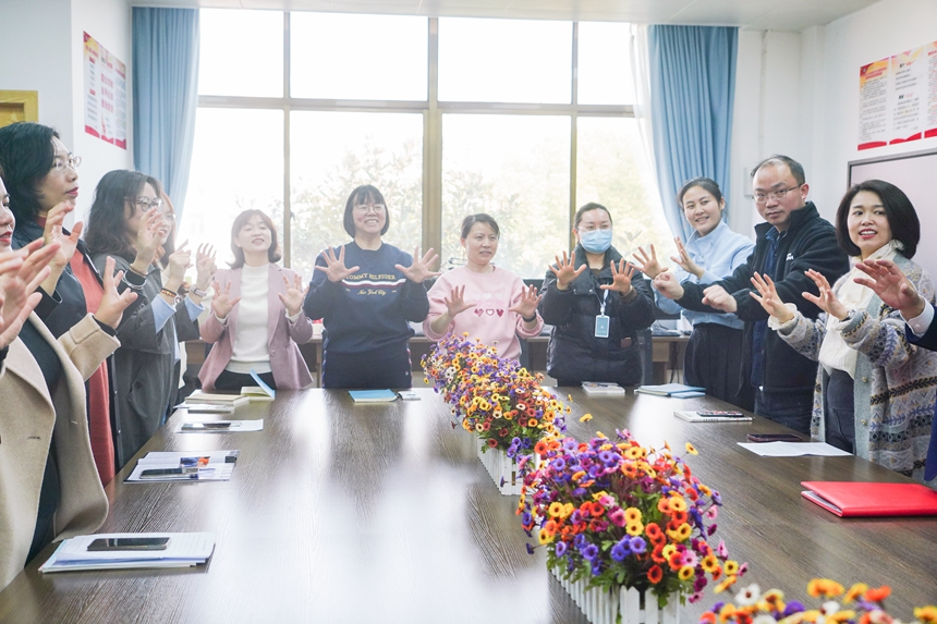 在图书馆教师研修室,大家分享近期的读书心得,李慧、马煜琪、吴燕三位老师分享了《我们仨》、《教育的文化性格》、《态度 大国工匠和他们的时代》读书心得。活动最后,李春莲带领大家学习“手指操”,在欢乐的气氛中结束本期读书会。