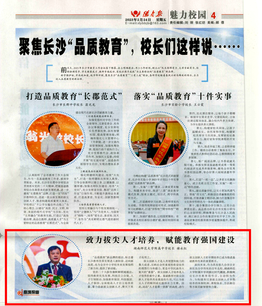 【德育报】谢永红:致力拔尖人才培养,赋能教育强国建设