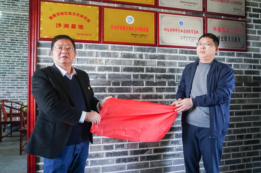 在沙洲党校,湖南师大附中革命传统教育和社会实践基地正式挂牌。在沙洲村广场前,大家面对党旗,重温入党誓词。随后,大家前往“半条被子的温暖”专题陈列馆,聆听了“半条被子”军民鱼水情深的故事,重温了2020年习近平总书记考察汝城县沙洲村时的殷切嘱托。大家还参观了当年红军长征路过汝城留下的历史实物和珍贵照片,切身体会了共产党人始终依靠人民、始终为了人民的不变初心。汝城县委党校教师宋蔚以《不忘长征初心 传承半条被子精神》为题为大家上党课。