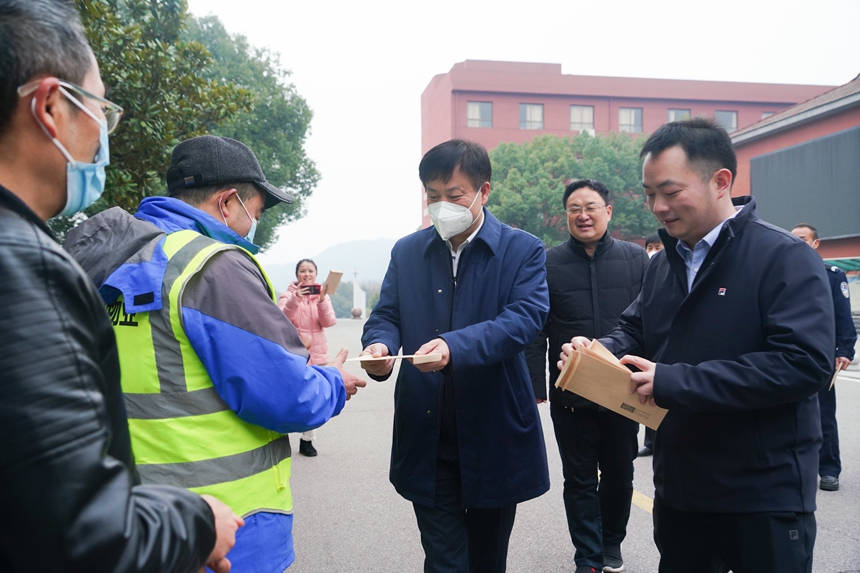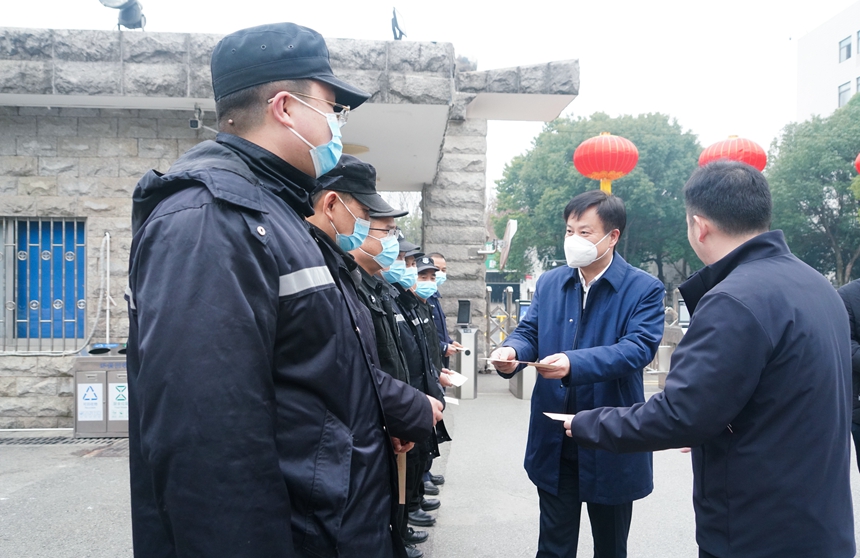 1月21日,正值农历除夕,校长谢永红带队看望慰问春节期间坚守一线的安保后勤工作人员,党委委员李智敏陪同。