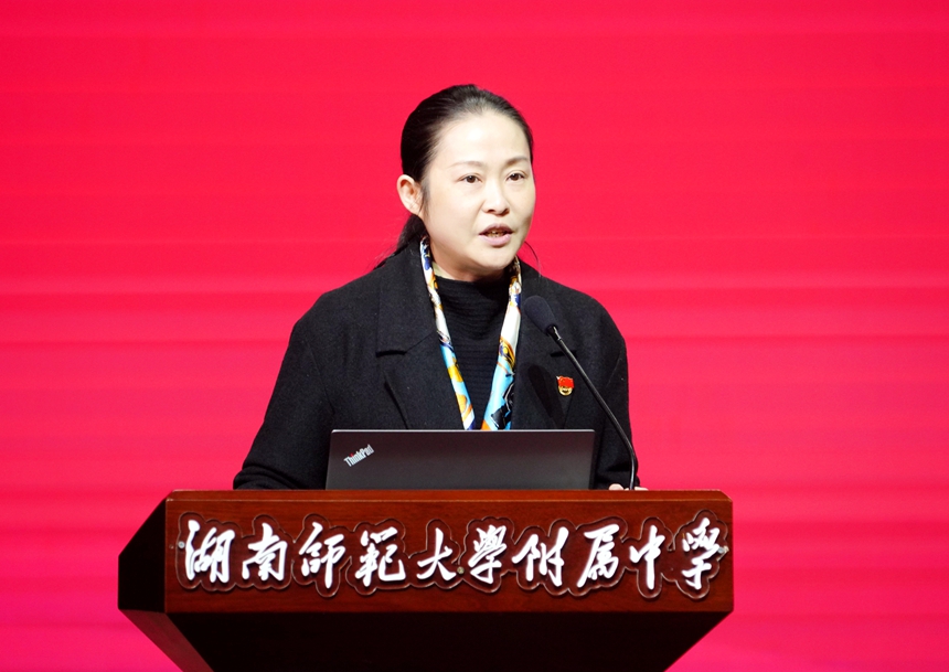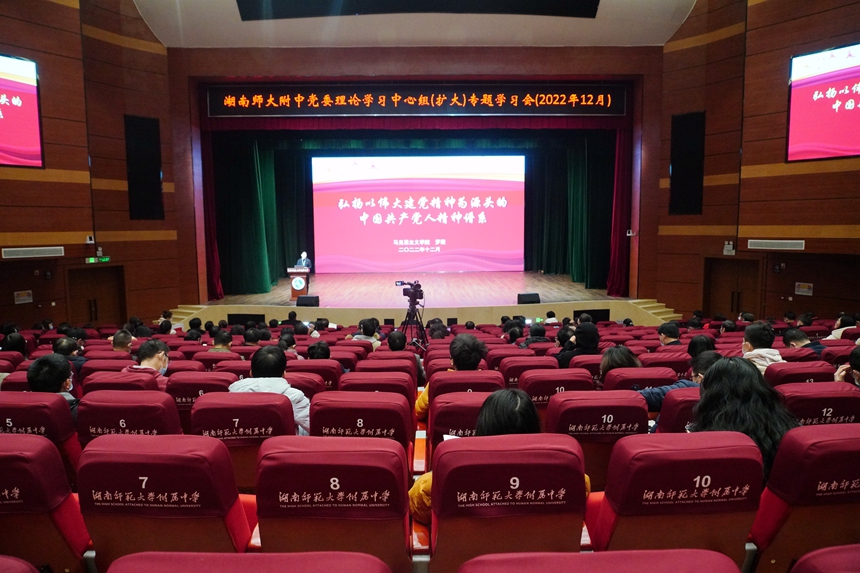 12月9日下午,学校举行学校举行党委理论学习中心组(扩大)专题学习,湖南师大马克思主义学院形势与政策教研部主任罗薇来到湖南师范大学附属中学学生活动中心,宣讲党的二十大精神。全体党委委员、中层干部、党支部书记、教研组长等参会。会议由党委书记黄月初主持。