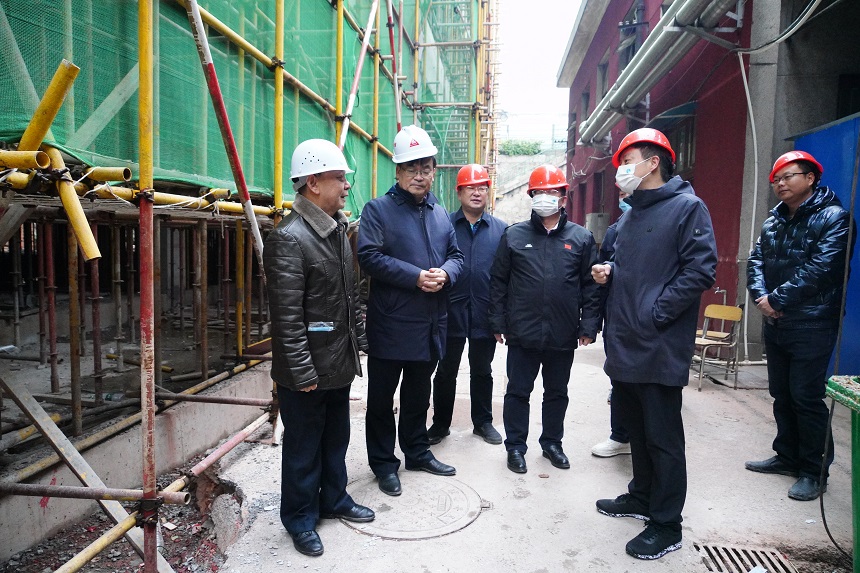 项目建设过程中,谢永红、黄月初等领导多次亲临施工现场指导建设工作,对建设单位和后勤部门能够克服天寒地冻的恶劣天气确保项目如期封顶表示慰问和感谢。
