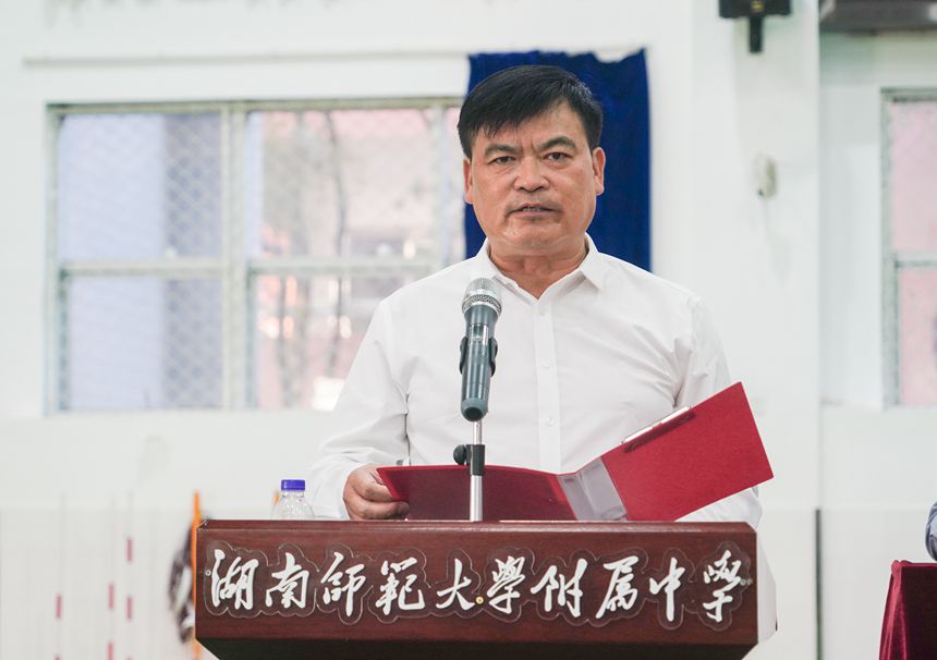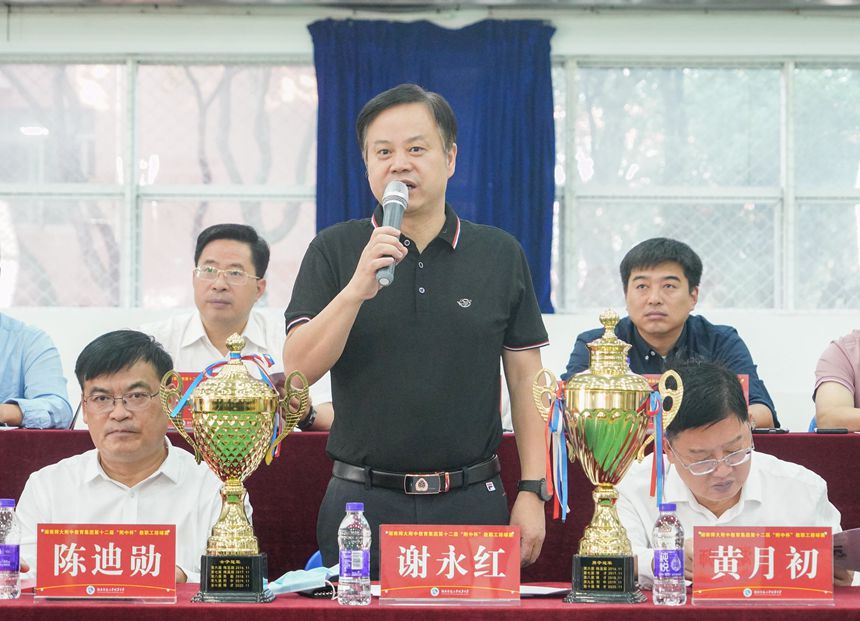 组委会执行主任、副校长兼工会主席陈迪勋致开幕词。他对组委会、各集团校工会、教职工运动员等表示了衷心的感谢。他指出,大力开展文体活动是全国文明校园和全国模范之家的传统,也是附中教育集团众多体育爱好者的要求。他强调,裁判员要忠于职守、各代表队要识大体顾大局、各运动员要弘扬“自强不息,追求卓越”的附中精神。德育与学生发展处主任、本届比赛疫情防控组组长李钊提出了疫情防控要求。上一届冠军代表队将奖杯移交组委会。随后,运动员代表刘覃老师、裁判员代表陈静分别进行了宣誓。组委会主任谢永红宣布湖南师大附中教育集团第十二届“附中杯”教职工排球赛开幕。