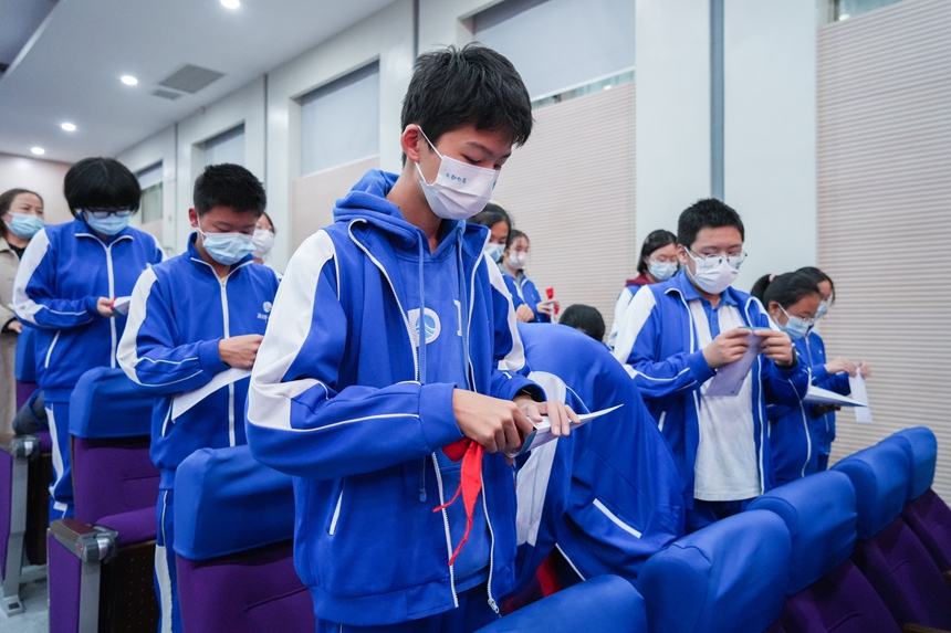 教工团支部少工委员刘奕宣布了离队人数。同学们摘下红领巾,认真叠好,收进信封珍藏。在退队旗后,九年级同学光荣离队,正式告别童年,步入青春年华。