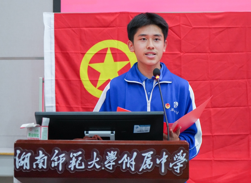 罗舒怀代表新团员发言,他表示成为一名共青团员,不仅代表着荣誉,肩上也多份责任与担当。