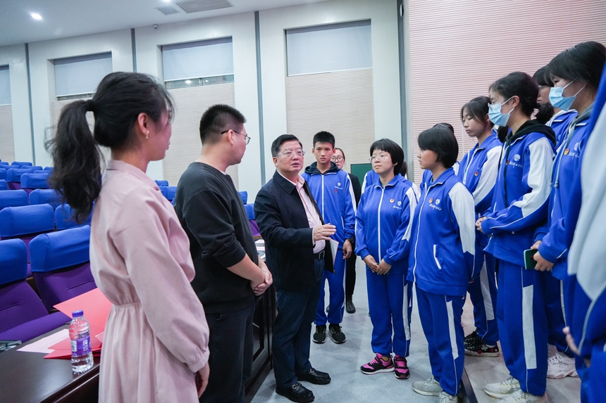 活动结束后,黄月初与新团员们进行交流,他嘱咐大家要时刻佩戴团徽,发挥模范带头作用,引领、帮助、影响更多的同学向团组织靠拢,为实现中华民族伟大复兴的中国梦不懈奋斗。