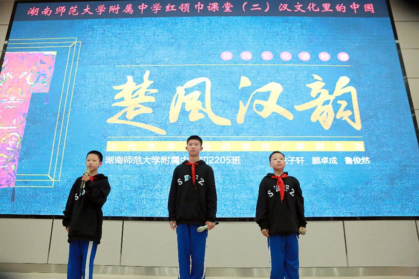 10月27日,为贯彻落实党的二十大报告精神,推进文化自信自强,传承中华优秀传统文化,我校七年级举行了第2期红领巾课堂——“汉文化里的中国”。本次活动由初中部历史备课组长许萍主持。
