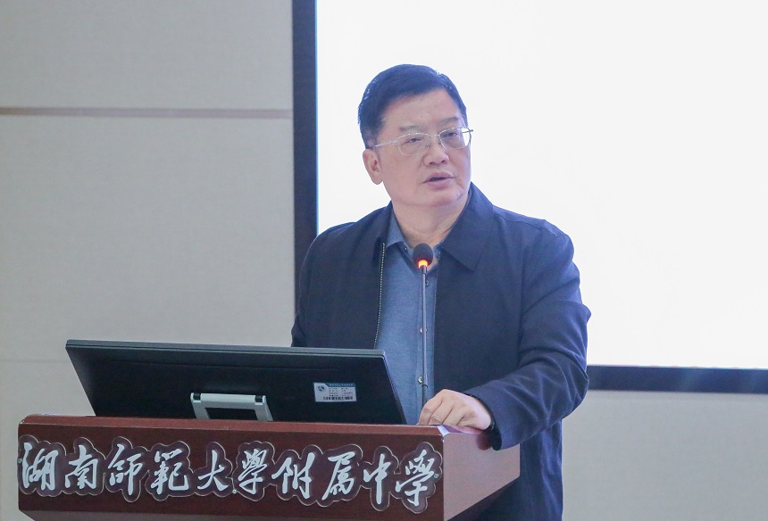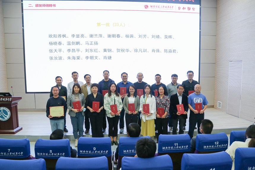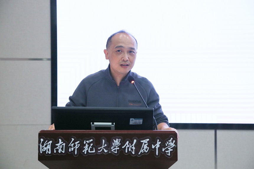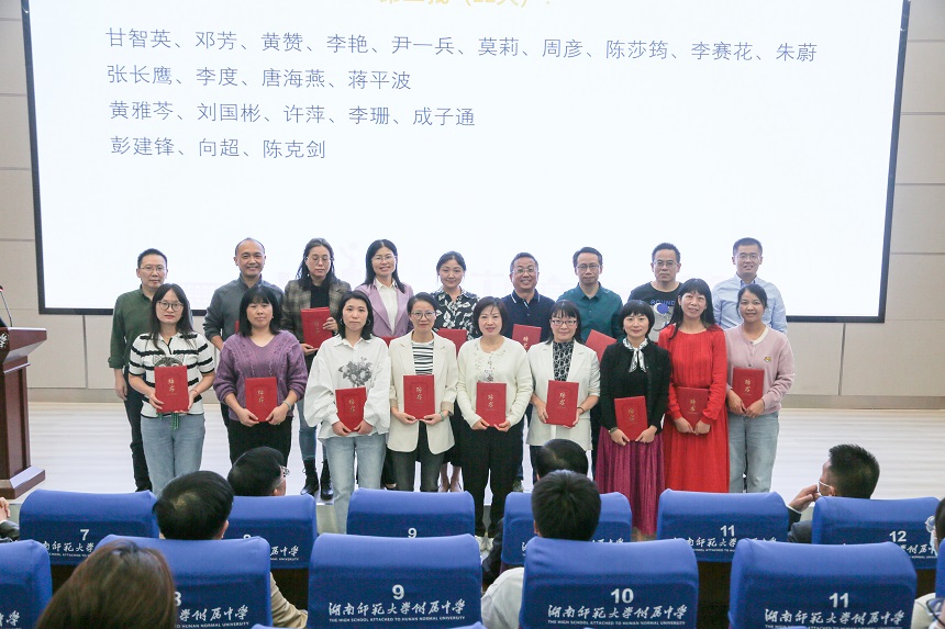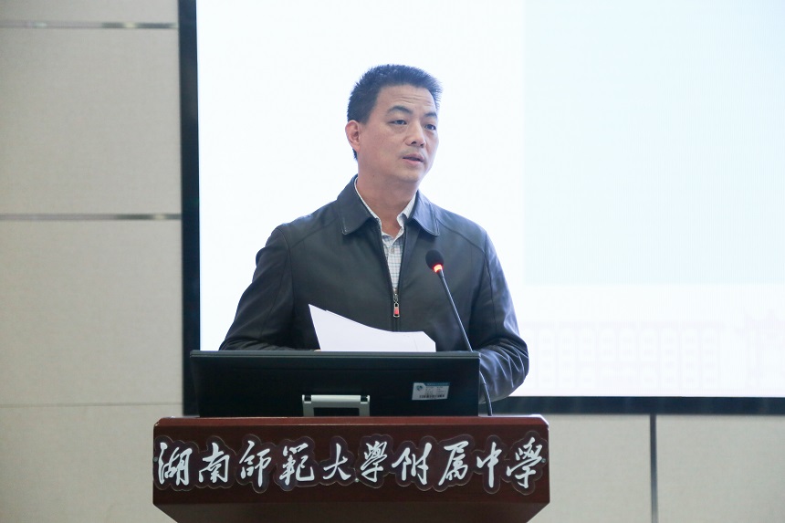 黄月初最后总结讲话。他强调了师徒结对的重要意义,指出,“青蓝工程”(师徒结对)、青年名师培养工程、青年教师关爱工程、青年教师对外展示工程,共同组成了我校青年教师培养的矩阵,要求学校、教研组、师傅和徒弟四方联动,精准发力,加快青年教师成长的步伐。他希望,青年教师要利用好师徒结对的平台,向师傅学到真本领,在成就学生、服务好湖南省基础教育发展的同时也实现自己的生涯梦想。
