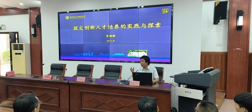 科技创新中心副主任李湘黔作了《拔尖创新人才早期培养的实践与探索》的学术报告。他说明强基计划、奥林匹克学科竞赛的基本情况,介绍了湖南师大附中“小中大一体化”创新拔尖人才培养模式与经验,结合汝城县一中的实际情况提出了五点建议。他的报告干货满满,具有较强的启发性和实操性。