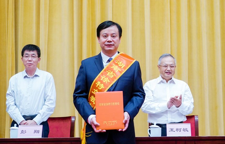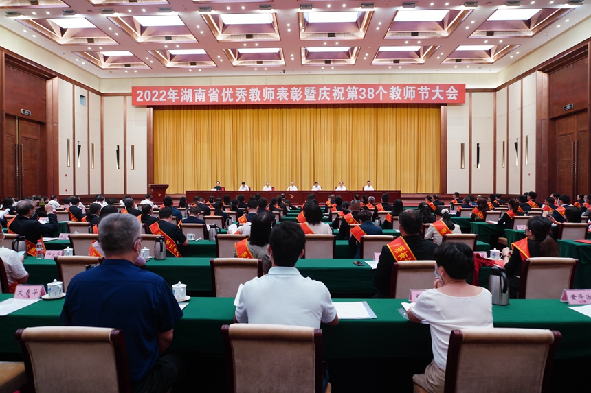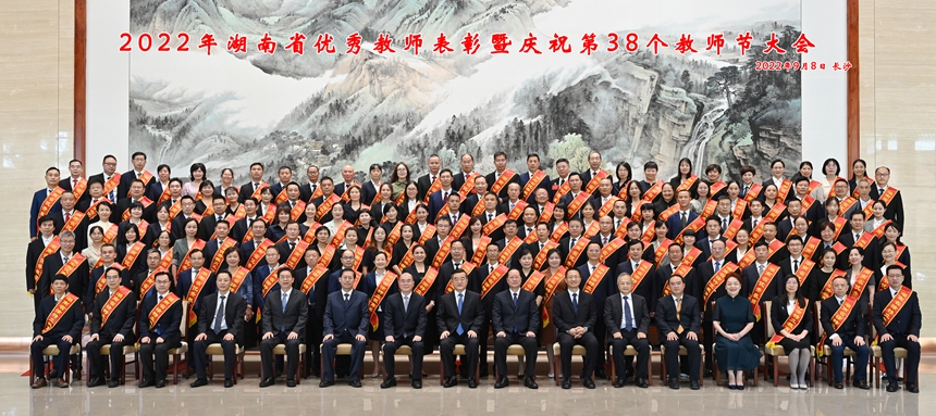 9月8日下午,2022年湖南省优秀教师表彰暨庆祝第38个教师节大会在长沙举行。省委书记、省人大常委会主任张庆伟,省委副书记、省长毛伟明会见了优秀教师代表。省委副书记朱国贤参加会见并出席大会。我校校长谢永红荣获第九届湖南省徐特立教育奖,受到省委、省政府领导亲切会见。
