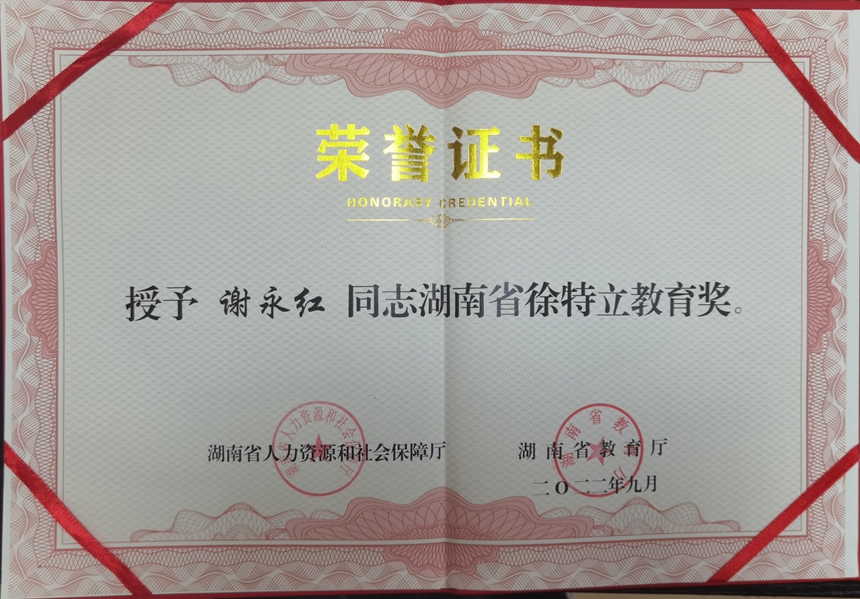 据悉,徐特立教育奖是湖南省政府为弘扬尊师重教的优良传统,激励广大教师和教育工作者献身教育事业而设立的,以无产阶级革命家、教育家徐特立的名字命名,是全省教育教学最高奖,每5年评选一次。评选范围包括全省各级各类学校中从事教育教学和学校管理工作,对教育改革和发展有突出贡献的优秀教师和教育工作者。“湖南省优秀教师”和“湖南省优秀教育工作者”每5年评选一次,评选范围为全省教育系统从事教育教学、科学研究、管理服务等工作5年以上,取得显著成绩的教师和教育工作者。其中,“湖南省优秀教师”的参评对象为各级各类学校专任教师,“湖南省优秀教育工作者”的参评对象为学校校长、教育行政部门干部和其他教育机构管理人员。