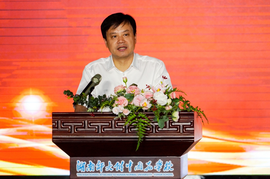 谢永红简要回顾了湖南师大附中和附中雨花学校的办学历程,并对师大附中雨花学校的发展提出了两点希望:一是要从教育思想、教育理念、教育方法、管理模式等方面适应合作办学所带来的新变化,必须统一思想,凝聚共识,做到同心同德,同向同力,坚持内涵发展不动摇,努力寻求新突破。二是要传承和发扬好湖南师大附中的文化和精神、理念和经验,全校上下众志成城,创新实干,攻坚克难,砥砺奋进,努力推动学校高质量发展。