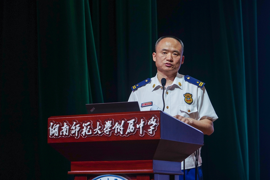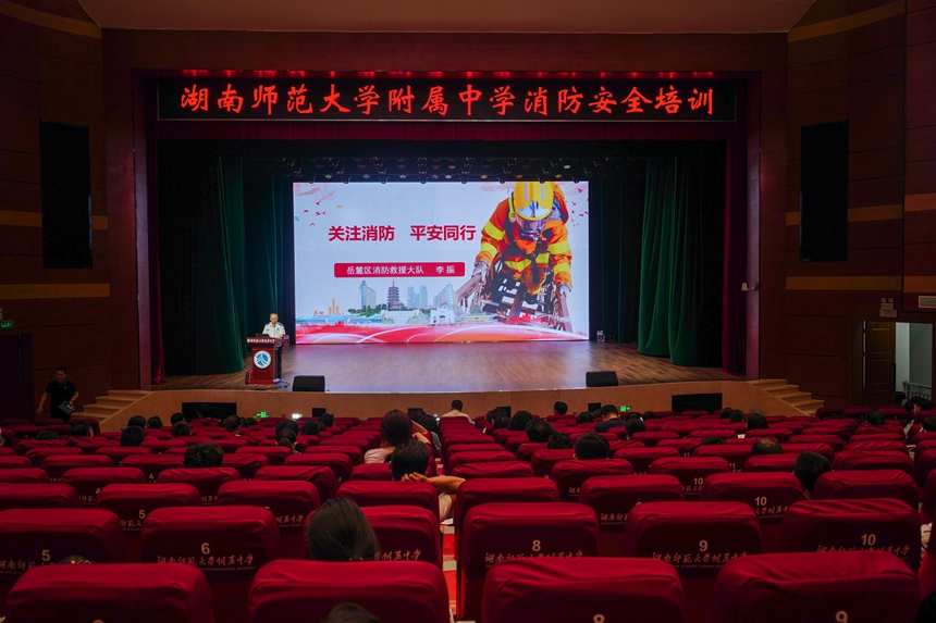 7月9日下午,学校在学生活动中心举行消防安全培训,岳麓区消防救援大队队长李振作专题报告,会议由后勤与保卫处主任李智敏主持,全体教职员工参会。